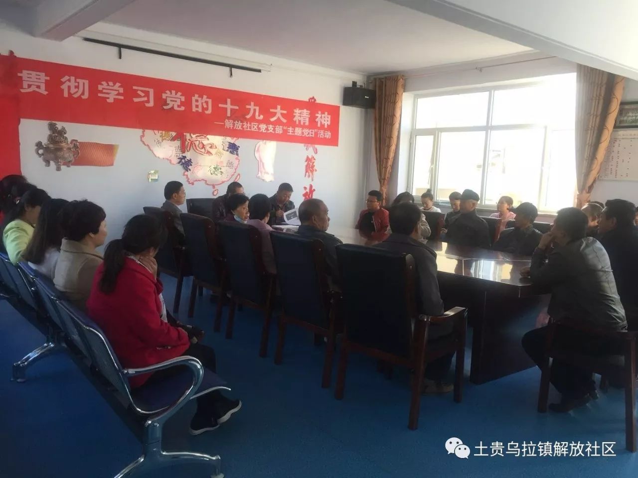 11月3日上午,解放社区党支部组织全体党员和社区干部、部分网格长,开展了以“贯彻学习党的十九大精神”为主题的党日活动,旨在把党员干部的思想和行动统一到大会精神上来,凝心聚力,推动党的十九大精神落地生根,掀起学习习近平总书记所做的十九大报告的热潮。