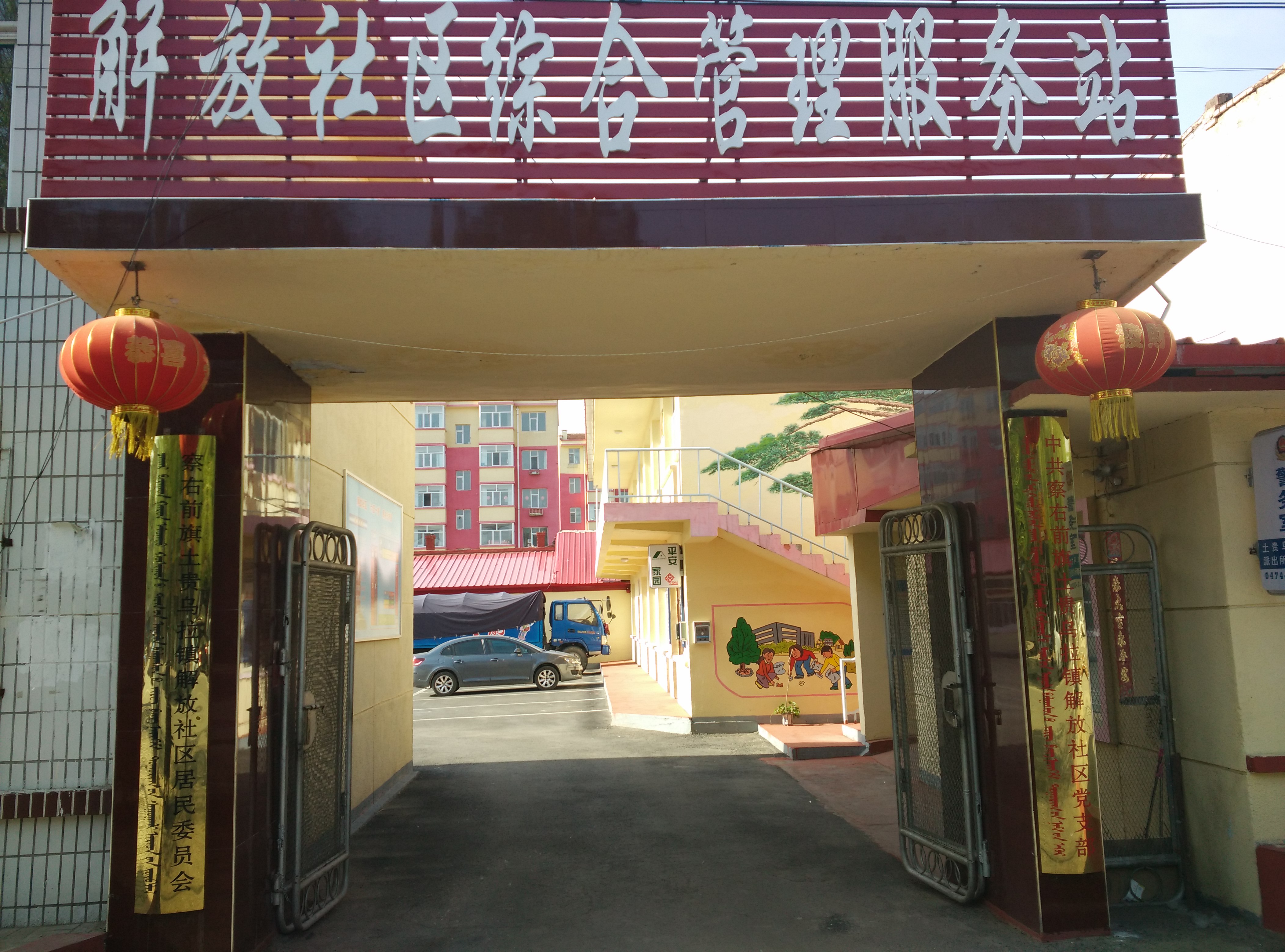 解放社区位于察右前旗土贵乌拉镇中心,地处光明路西,解放路南,兴华街北,占地面积1.3平方公里,辖12个居民小组,共有2505户居民,6654口人,其中流入57户,181人,辖区内共有行政事业单位61家,社区现有工作人员28名,支部共有党员59名,其中外出党员11名。 2014年,该社区在旗委政府和镇党委的高度重视下,加大人力、物力、财力的投入,优先配置各种资源,我们把“关爱人、服务人、教育人、凝聚人”作为工作职责,把“团结、务实、创新、发展”作为社区的工作目标,建成了“三有四化、六园一港”标准化社区。